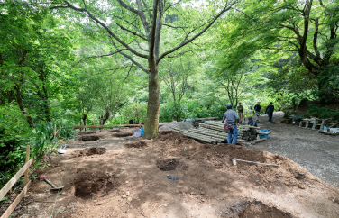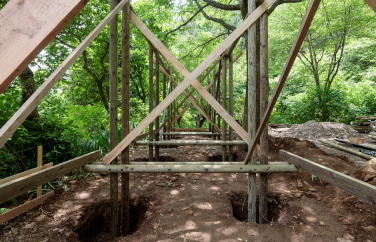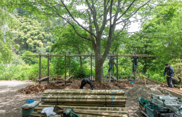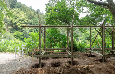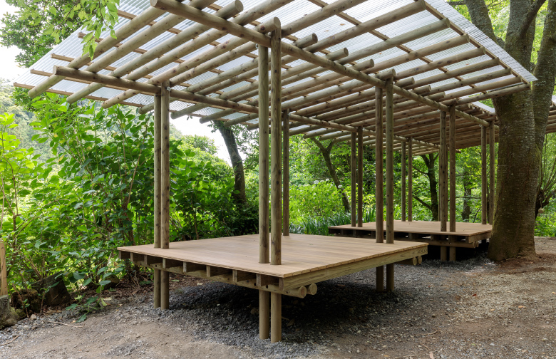 自然景勝地の風景に馴染む佇まいと、植生や土中生物との共存を実現した東屋が完成しました。